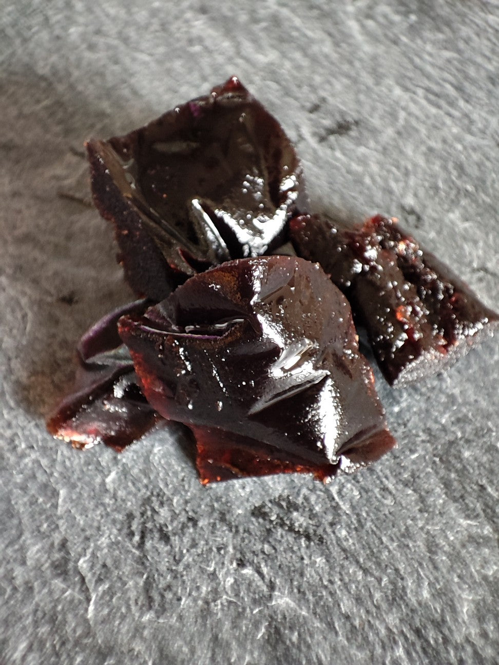 Glané récupère et égrapé à la main, onobtient après cuisson un jus d'un pourpre foncé très intense.